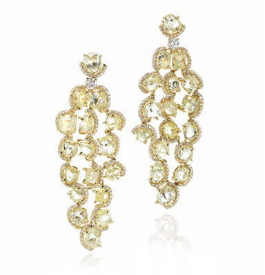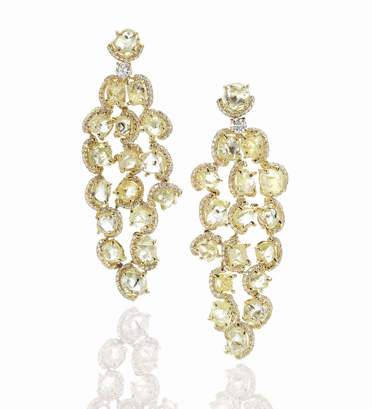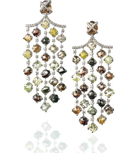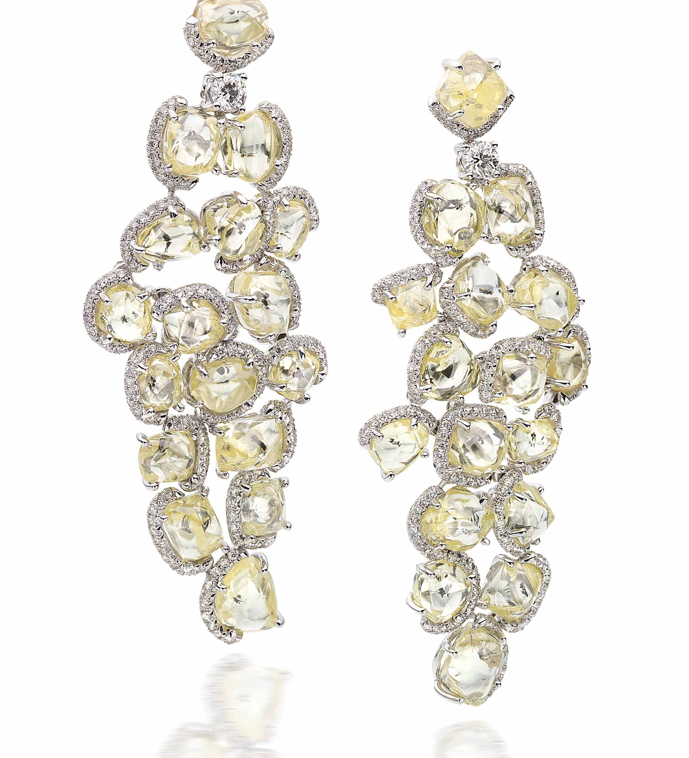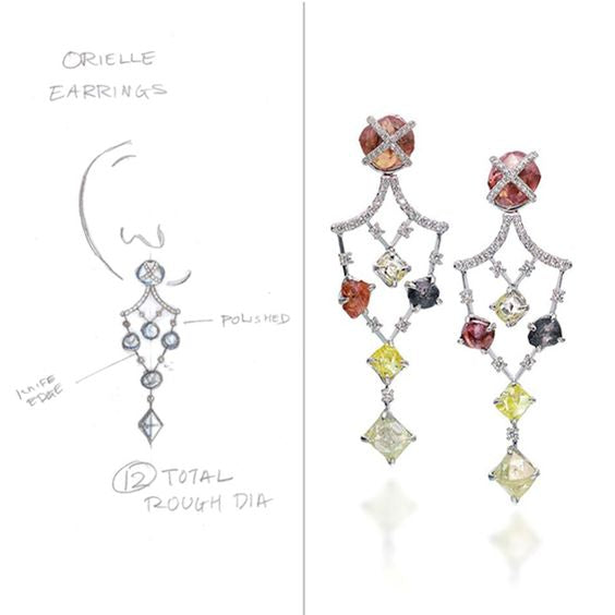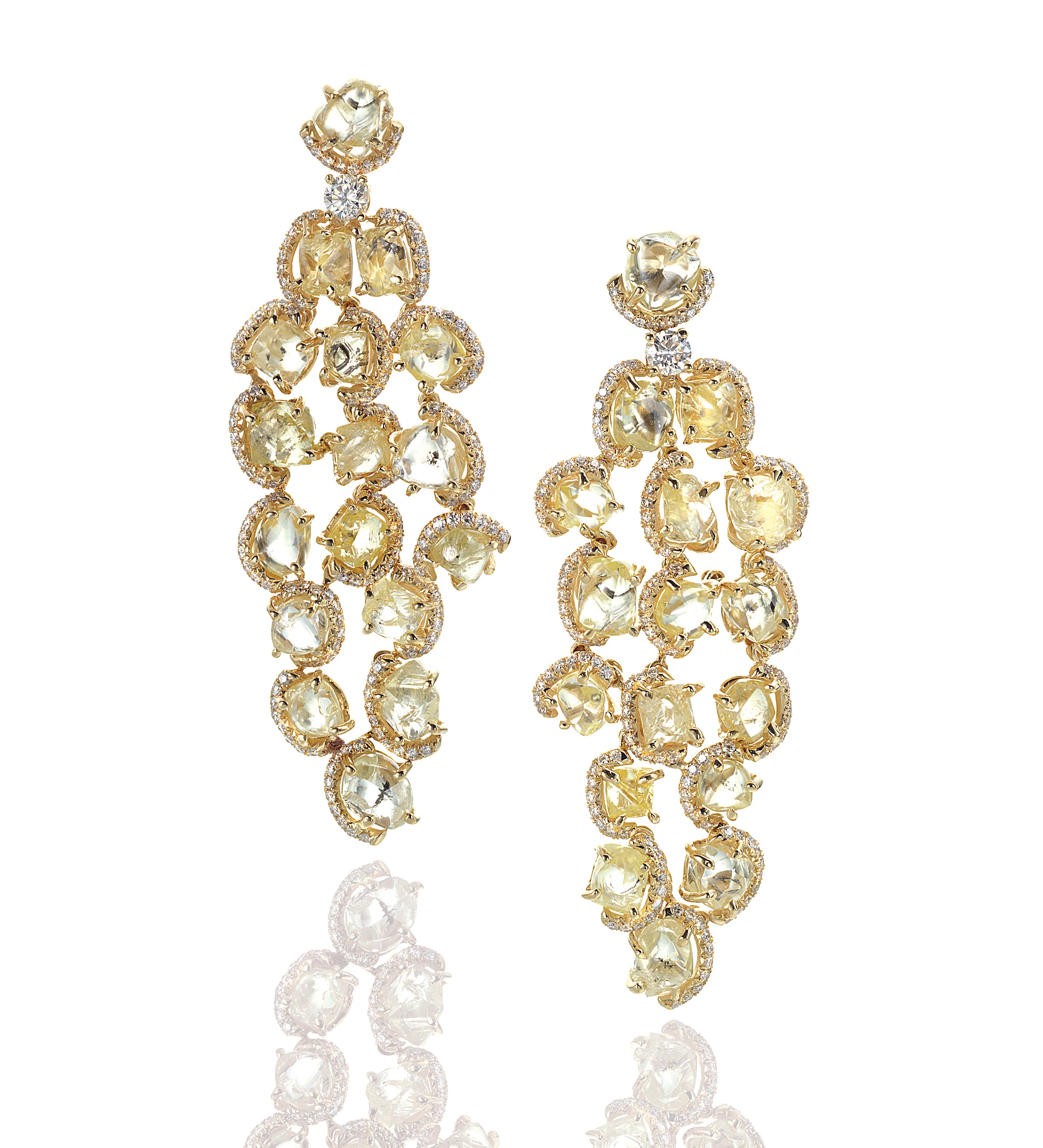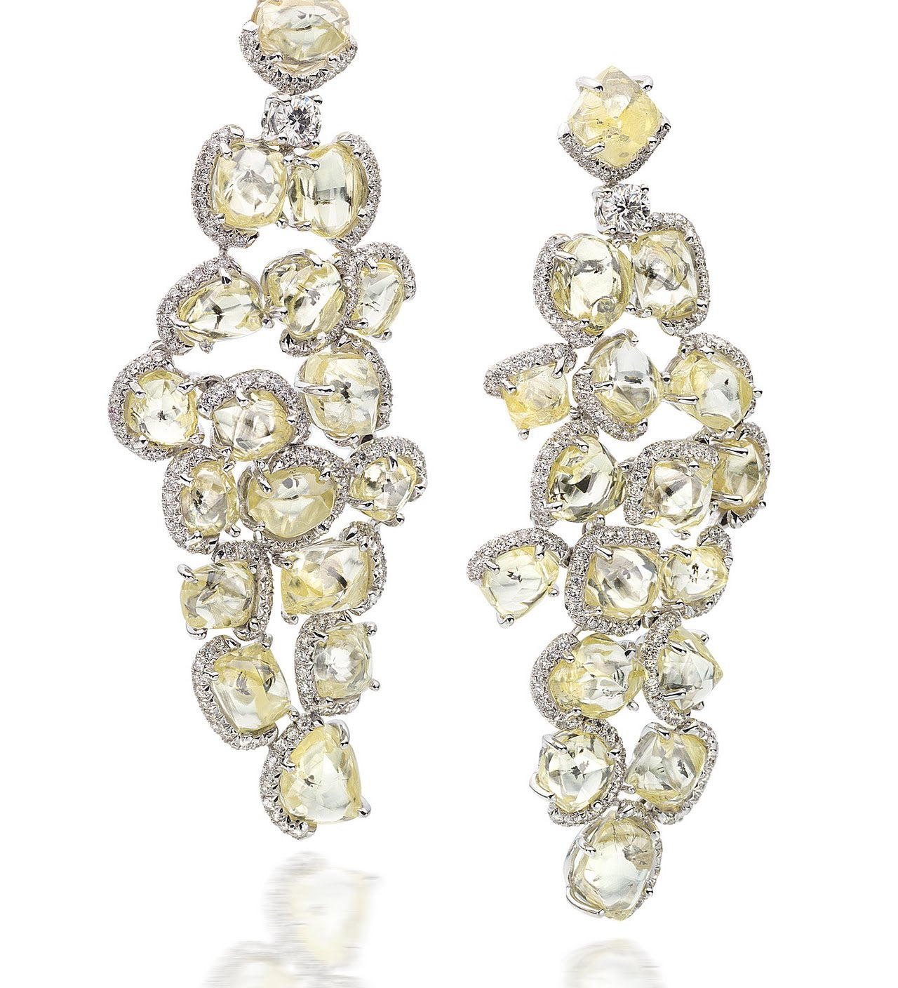 The RAW Earrings collection features an extraordinary array of Natural Rough Colored Diamonds ranging from soft pinks to electric yellows, each piece is hand-crafted in 18K white Yellow or Pink Gold.