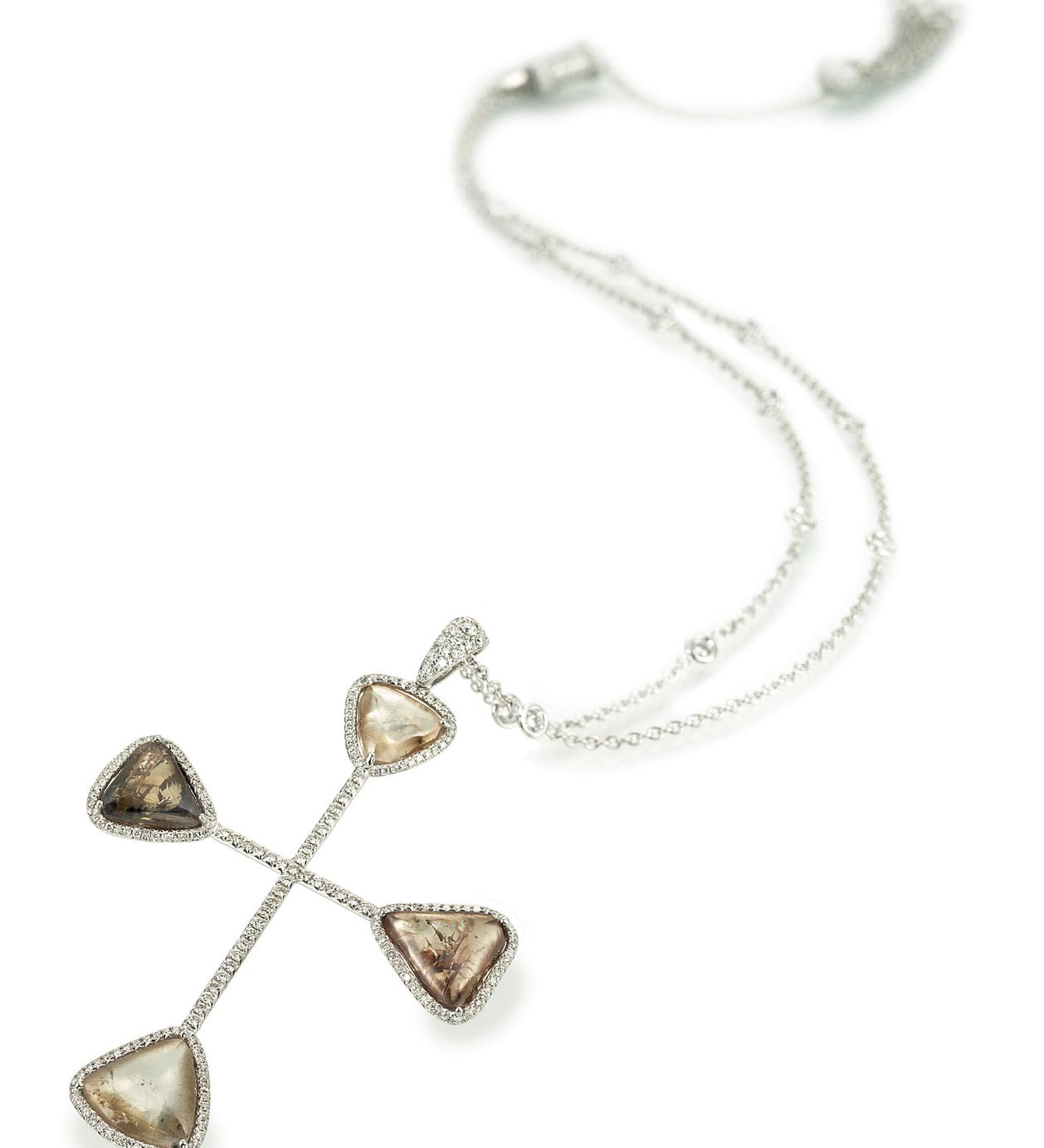 Our RAW pendants Collection is resplendent with sensuality, strength and brilliance, like the unbreakable bond of love, as eternal as the stars. The collection features an extraordinary array of colorful Natural Rough Diamonds, unique shades and shapes that are seen only in Natural Rough Diamond.