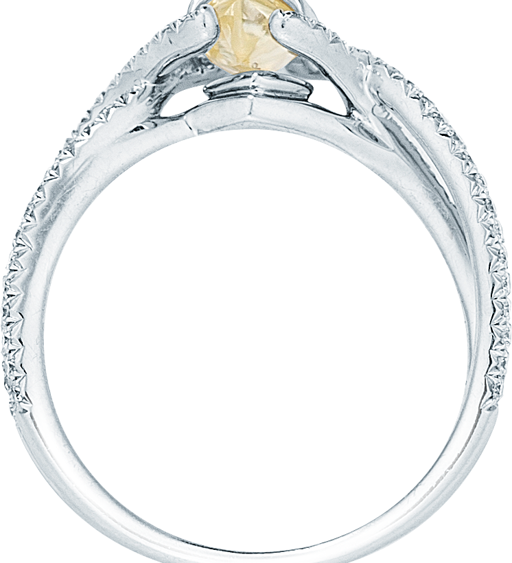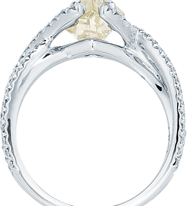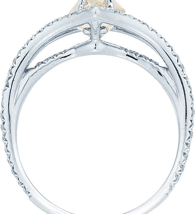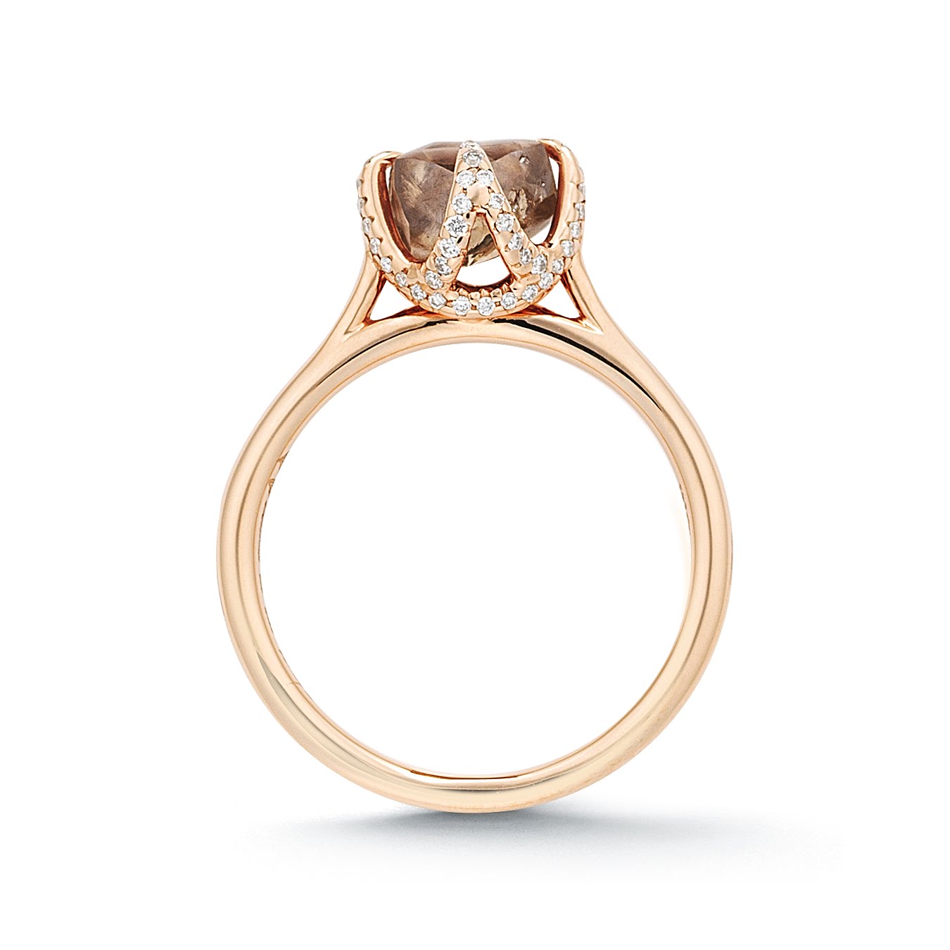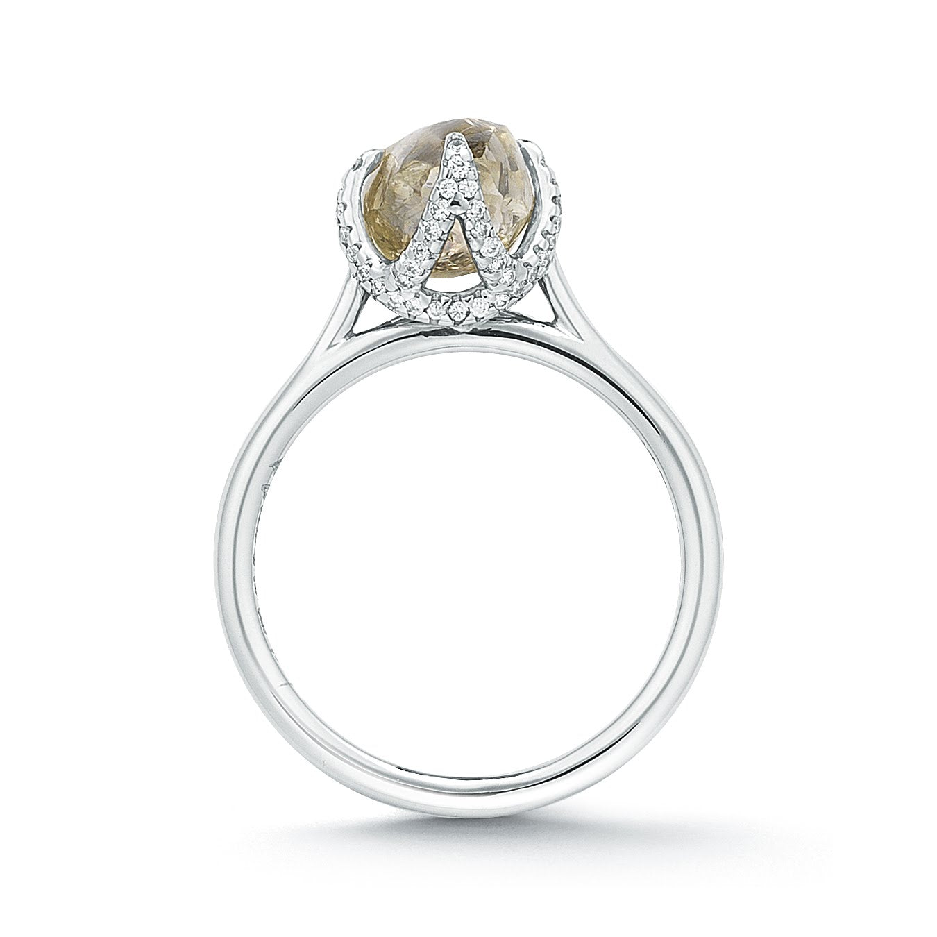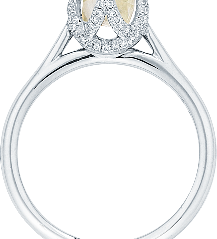 The UNITY collection is our show-stopping take on a split shank design. Branches of micro pave diamonds intersect at three points to showcase an exquisite rough.