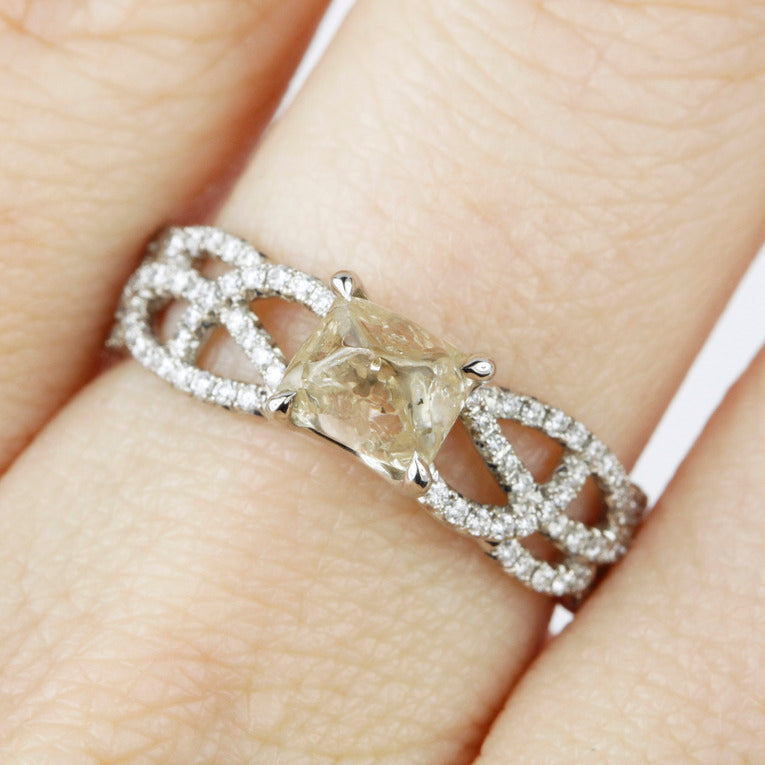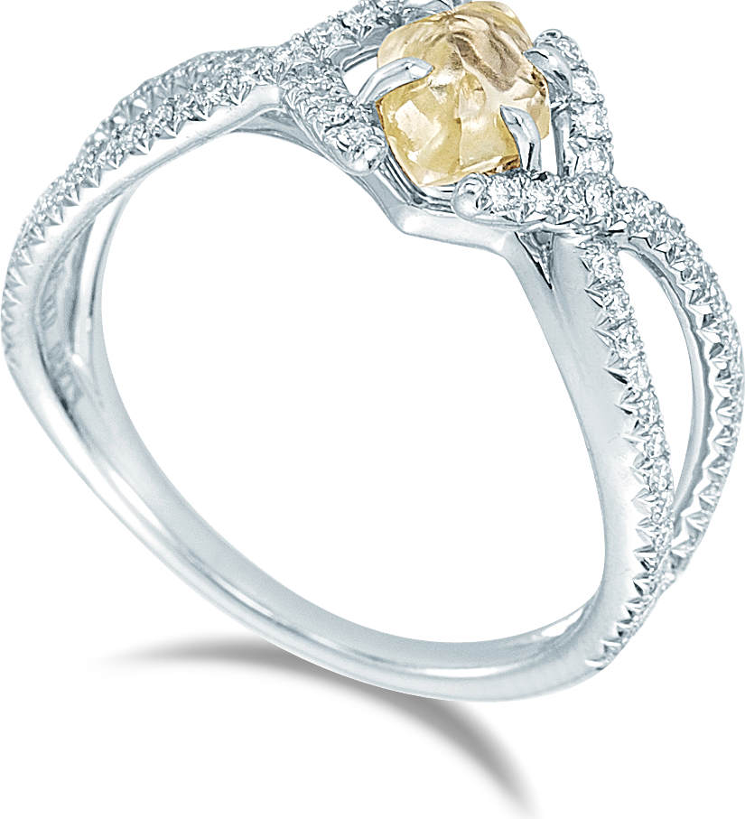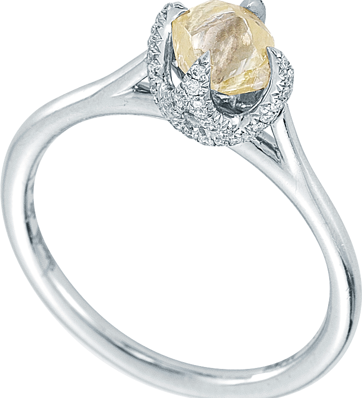 Our Raw Signature Engagement Ring as its name implies gives each woman the chance to declare her unique style.