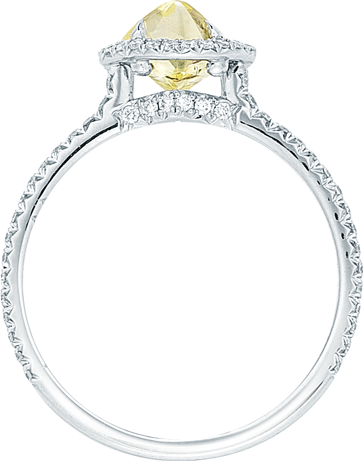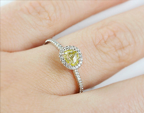 A beautiful, elegant, classic solitaire ring inlaid with 1.00ct - 2.00ct Natural Rough Diamond in Lemon Yellow color and 0.25cts - 0.40cts of micro pavé diamonds handcrafted in Platinum.