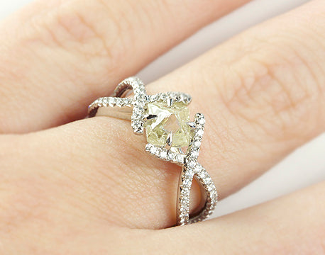 Custom Order - Only 21 Days to Get our beautiful, elegant, unique solitaire ring inlaid with 0.90ct - 2.00ct Natural Rough Diamond in Champagne Yellow color and 0.30cts - 0.45cts of micro pavé diamonds.