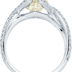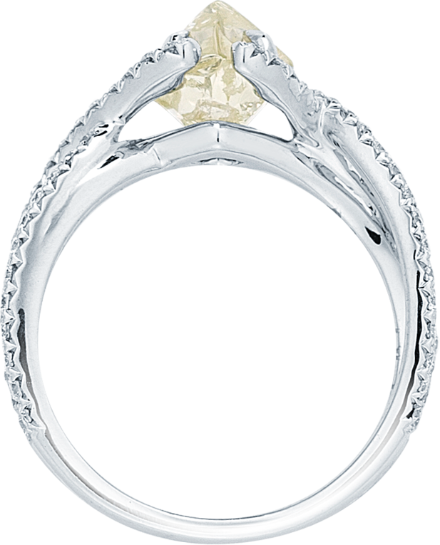 Branches of micro pave diamonds intersect at three points to showcase an exquisite rough. Unity is a show-stopping take on a split shank design.