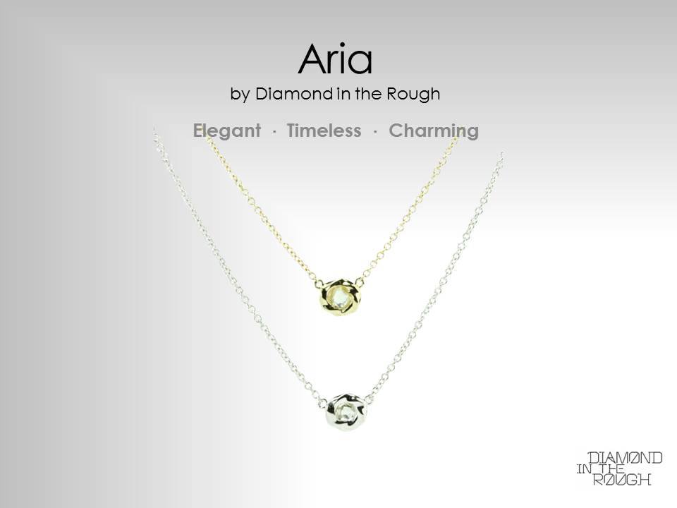 The Aria Collection caters to the everyday woman who longs for a fashionable yet simple way to own a piece of a natural rough diamond. Each Aria piece features a modest yet alluring diamond, blending understated design with authentic luxury.