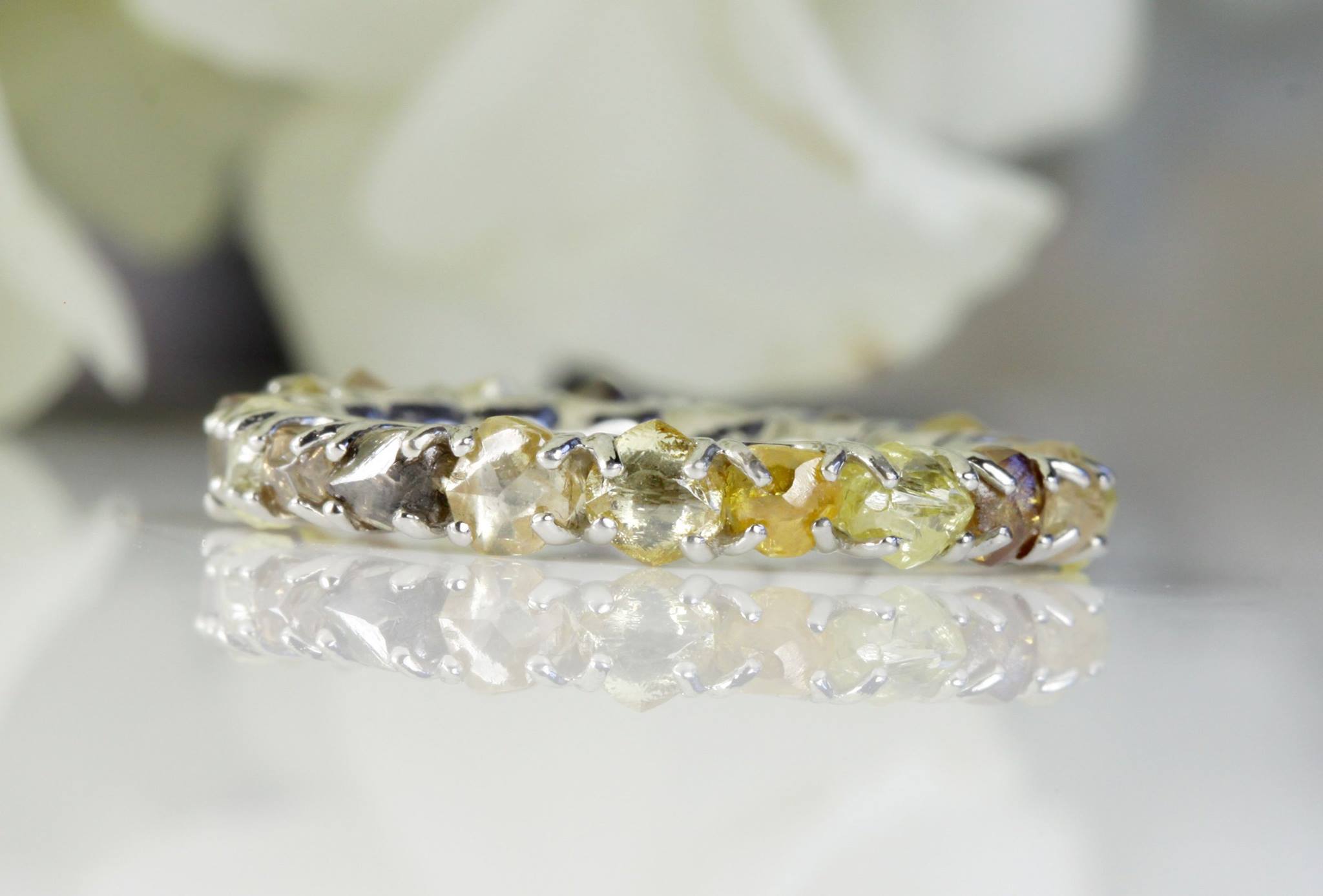 Custom Order - Only 21 Days to Get Our Rough Diamond  Eternity Wedding Band from our - ETERNITY Collection - featuring 16-20 of MIX Fancy Natural Rough Diamonds totaling 5.50ct - 6.50cts in 18K white Gold.