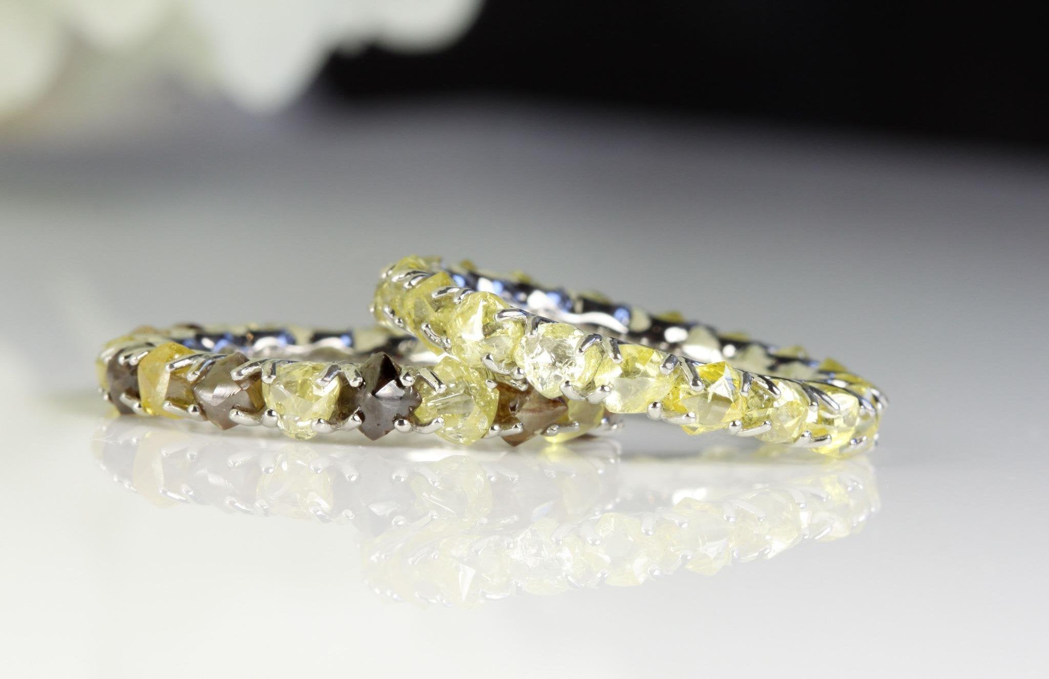 Custom Order - Only 21 Days to Get Our Rough Diamond  Eternity Wedding Band from our - ETERNITY Collection - featuring 16-20 of Lemon Yellow Natural Rough Diamonds totaling 5.50ct - 6.50cts in 18K white Gold.
