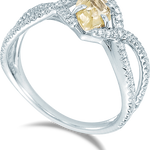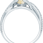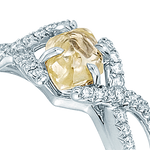 Branches of micro pave diamonds intersect at three points to showcase an exquisite rough. Unity is a show-stopping take on a split shank design.